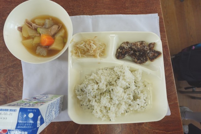 きょうの給食(くじらのたつたあげ)