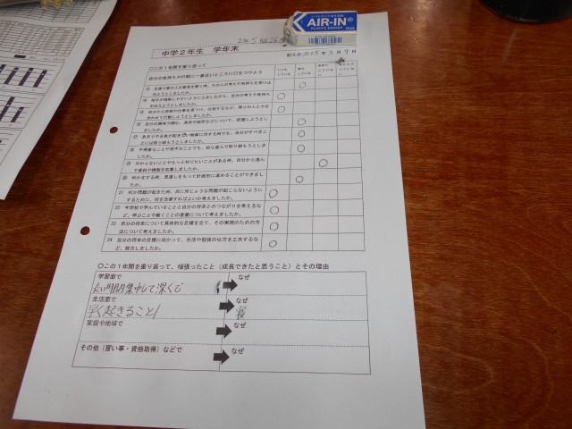 本日、2年生は各学級でテスト個票の返却とキャリアパスポートの記入を行いました。