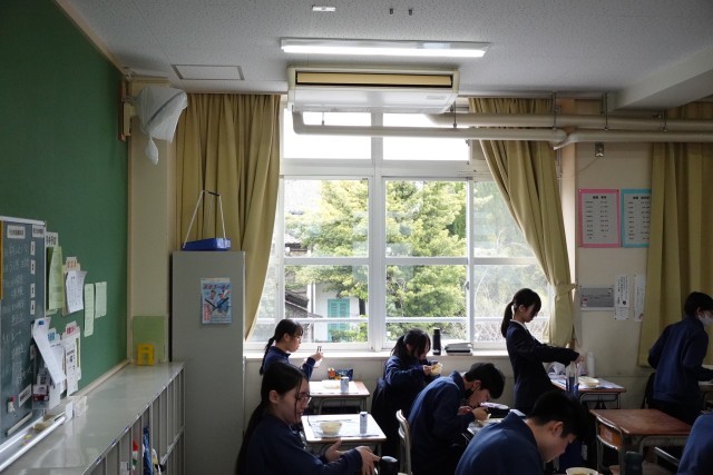 教室の窓からは泉布観が見える絶景のロケーション。この景色を眺めながらの給食も、あと2回かと思うとすこし寂しいですね。