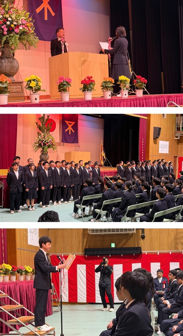 新入生代表の言葉では、中学生になった喜びとこれからの学校生活への期待、そして仲間とともに成長していこうとする決意が力強く語られました。感謝の気持ちも込められた、たいへん立派なあいさつでした。