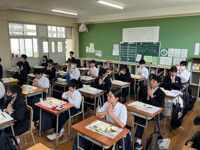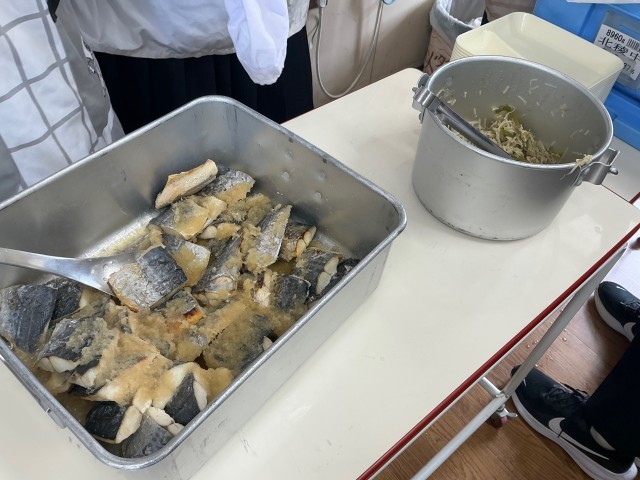 Keywords: Hokuryō Junior High School, school lunch, school diary, sagoshi, Spanish mackerel, grated daikon, miso soup, 2nd grade, Japanese cuisine
