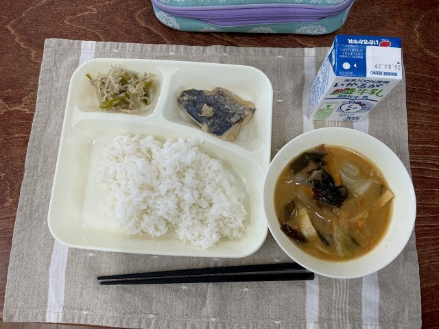 Today's school lunch was grilled young Spanish mackerel with grated daikon soy sauce.