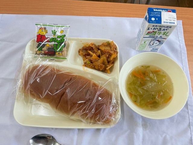 Keywords: Hokuryō Junior High School, school lunch, school diary, potato meat gratin, brown sugar bread, Year 2 Class 3, popular menu