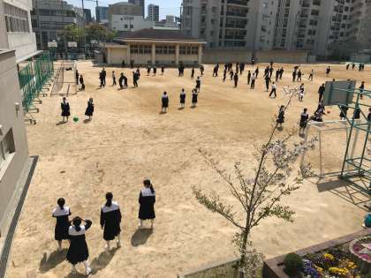 写真のように、晴れた日のグランドはたくさんの生徒で賑わっています。
