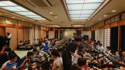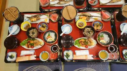夕食も予定通りの時間に始まりました。あれだけバスの中でおやつを食べてるのに、めちゃくちゃ食べてます。大丈夫???