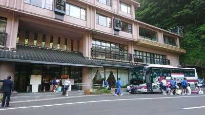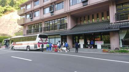 予定通りに8時にホテルかずら橋を出発しました。「ホテルの皆さん、ありがとうございました。」