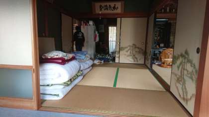 宿舎でそら豆のかわむきを体験しているところもありました。今晩おやすみする部屋(寝室)も拝見しました。