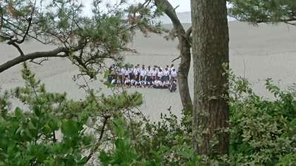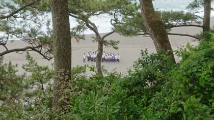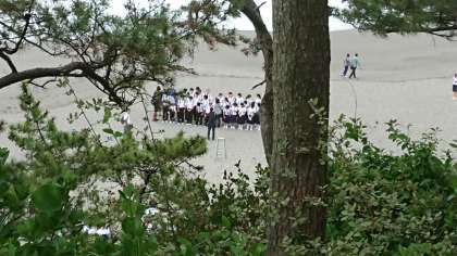坂本龍馬が北稜中学生を見ています。(坂本龍馬目線で太平洋と北稜中学生を見ています)