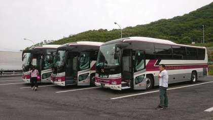 最終の休憩場所の室津に予定通りの時間で到着しました。子どもたちはバスではしゃぎすぎてお腹がすいたみたいです。補食としてパンとジュースが配られました。配られたらすぐに頬張ってます。すごい食欲です。