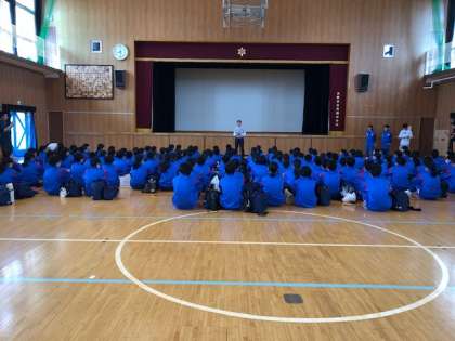 1年生自然体験学習の開始式の様子です。