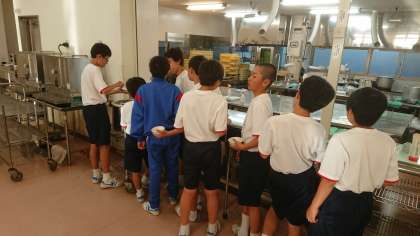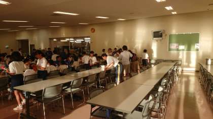 夕食のおかわり終了です。お腹いっぱいになったかな。今晩飲むお茶は、各自で水筒に!