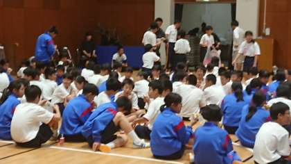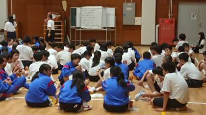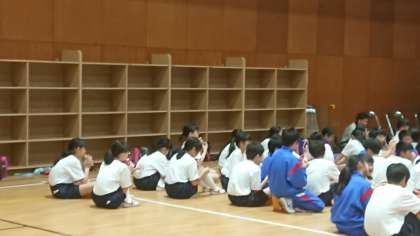 大いに盛り上がった室内オリンピックも終わりました!少しお腹がすいたようです。みんなで補食(クリームパンとリンゴジュース)をいただいています。