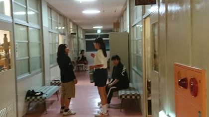 就寝準備中。消灯まで15分です。先生方にもお疲れの様子が!