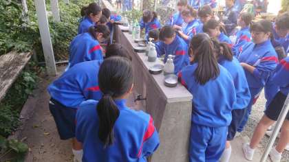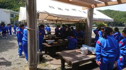 1組〜3組の野外料理の活動場所です。みんな少し戸惑っているようです。大丈夫かな?