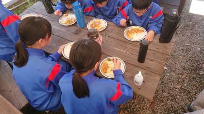 たいへん美味しいカレーをいただきました。「3組1班最高の味でした!」(校長先生より)