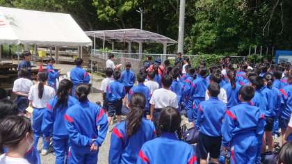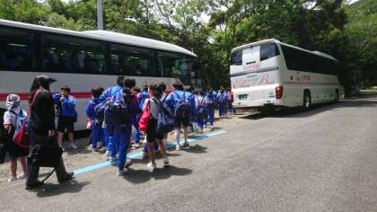 退館式・バス出発が45分遅れています。次は、トイレ休憩場所の紀ノ川サービスエリア出発時に情報を入れます。