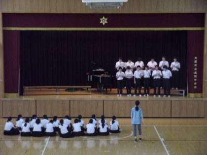 舞台の上がり方を練習し、男女に分かれてのパート練習と全体練習を行うと、あっという間に終了です。