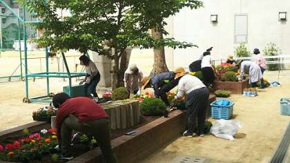 花壇の緑化活動が行われています。