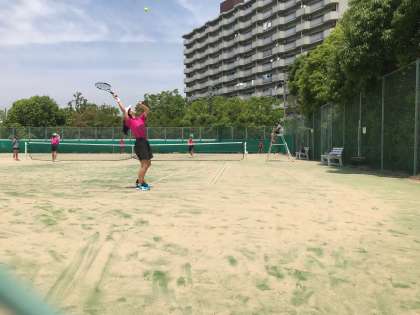 只今、女子テニス部、春季総体ダブルスの部準決勝の試合中です。