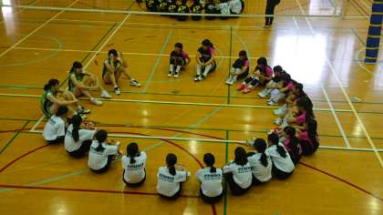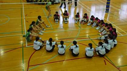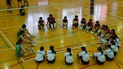 練習を終えて、最後はプロの選手への質問コーナーです。なごやかな雰囲気の中、行われています。