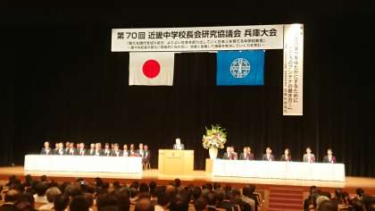 兵庫県神戸市において近畿中学校長会研究協議会が開催されています。今日は、近畿の校長先生方が一堂に会した研究会の日です。生徒の皆さん、校長先生も、日々勉強・研究しているんですよ。皆さんも勉強がんばってくださいね。テストも近づいていますので・・・!