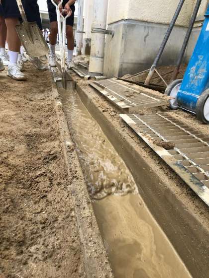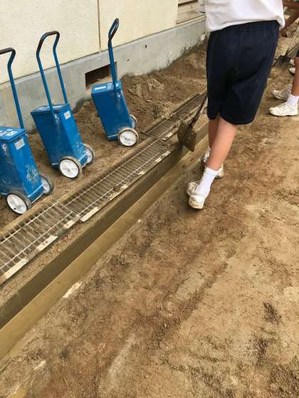 グランド整備をしていたところ、側溝さらいが始まっていました。