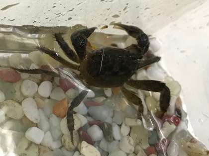 校内にやってきたカニさんは、「クロベンケイガニ」です。