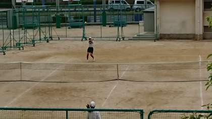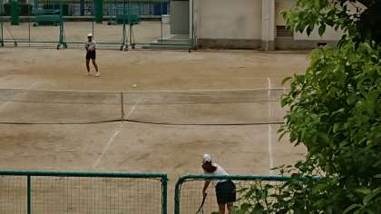 明日、『近畿大会』の出場をかけて女子テニス部の試合が岸和田市にある蜻蛉池公園テニスコートで行われます。今日もかなり蒸し暑いなか練習に励んでいました。明日は個人戦、明後日は団体戦があります。テニス部の皆さん、「明日は精一杯頑張って勝ち取ってくださいね!」