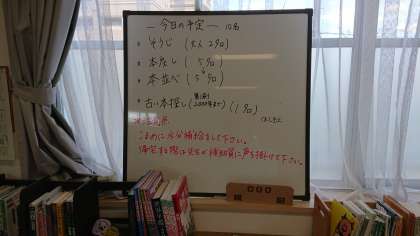 本日、図書館の蔵書の整理を読書部の子どもたちが手伝ってくれています。学校図書館補助員を中心に、学校元気アップの方々・図書館担当の教員が総出で作業を行っています。