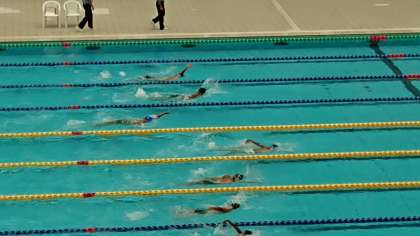 3年男子100m背泳ぎ予選。応援にも力が入ります!