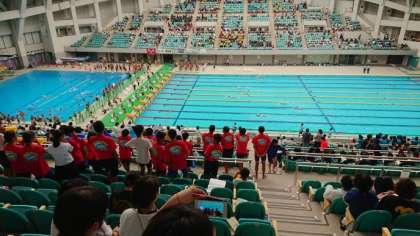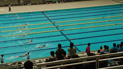 1年男子100m背泳ぎ予選の様子です!保護者の方もおおぜい応援に駆けつけてくれました。子どもたちのはずみになります。