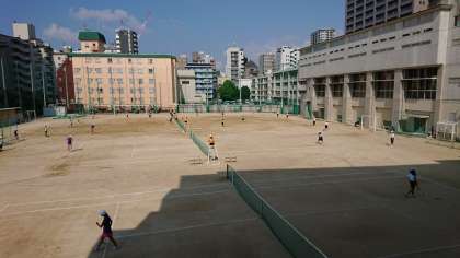 大阪市中学校秋季総合体育大会 硬式テニス(女子)の部の団体戦が、本日、北稜中学校のグラウンドを会場に行われています。第1試合は、北稜中の生徒たちは審判です。オレンジのシャツが北稜中のテニス部員です。今日の試合に勝てば、9月28日(土)・29日(日)の準決勝・決勝に進出することとなります。「がんばれ北稜!」