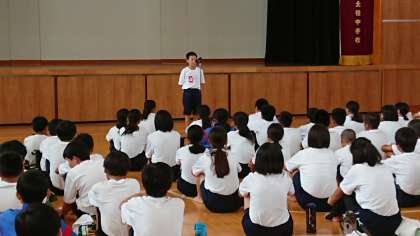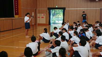 本日は、1年生の水泳大会です。天候にも恵まれました。写真は、体育館での開会式の様子です!体育委員が仕切ってしれました。