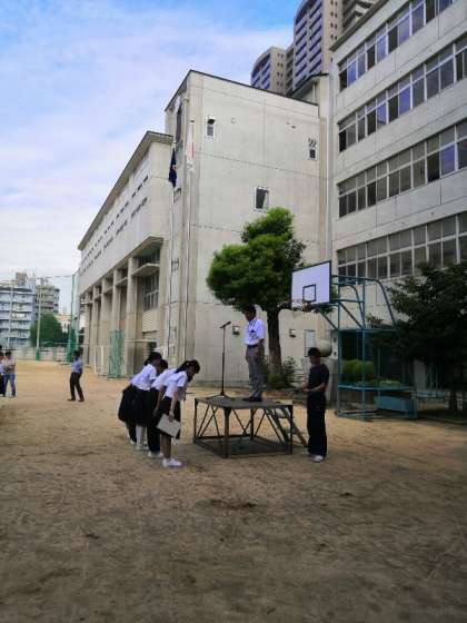 先週は体育館で始業式だったのですが、今週は通常通りの全校朝礼です。
