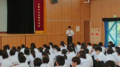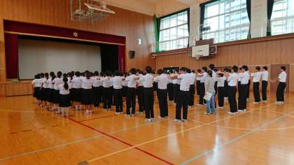 今朝は、2年生の学年集会がありました。担当の先生からは、「2学期に入って約2週間が経ちますが全体的には良く頑張っていると感じます」とお褒めの言葉がありました。「多少、気のゆるみを感じるところもありますので、自分自身で感じている人は注意してください」と付け加えてありました。