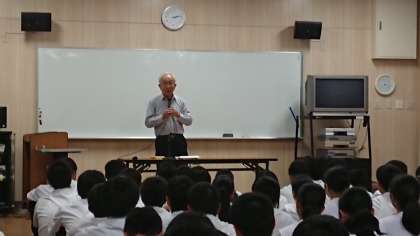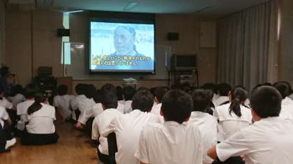 本日5・6時限目に、平和学習の取組の一環として、「アレン・ネルソンと歩んだ日々」と題して、平塚淳次郎さんにご講演をしていただきました。今まで共に活動してきたカメラマンの阿倍裕一さんも今回の講演会に参加していただきました。平塚さんは、アレンとの出会いの中で感じた、彼が戦争によって抱えた心の痛みについて語ってくれました。様々な人との出会いの中でのアレンさんの心の変化やその後の行動に感銘を受けたお話でありました。