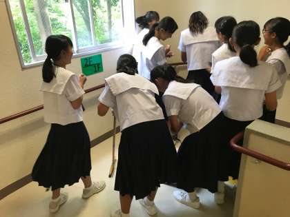 本日の学校公開を前にして、女子テニス部のみんなが、体育大会の練習で土の上がった階段をお掃除してくれました。