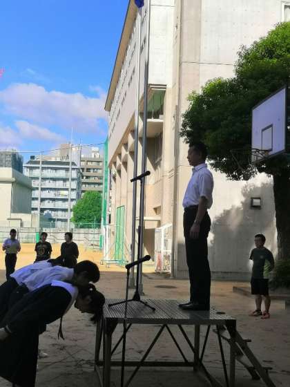 なんと教頭先生にとって北稜中学校では初めての全校朝礼だそうです。