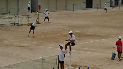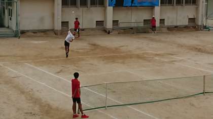 本日は、台風の影響による雨が心配されましたが、テニス部員の必死のグラウンド整備により、予定通り午後から茨田中学校との練習試合が行われています。「思いは天に通じます」「体育大会も晴れてくれ!お願い」