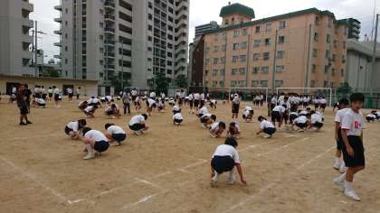 閉会式の練習と石ころ拾いをして、本日の全体練習は終了しました。さぁ、大会当節まであと3日です。「みんなが楽しい体育大会にしましょう!」