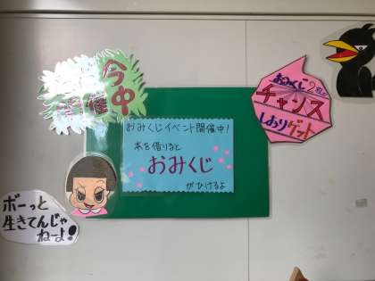 本校学校元気アップ図書ボランティアの皆様に企画、準備いただきました、おみくじイベント開催中です!