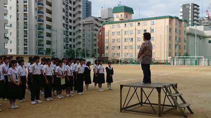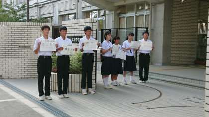 今朝は、2年生の学年集会がありました。担当の先生からは、現在、開催されているワールドカップラグビーにちなんで、『One for all . All for one』の言葉の意味についてのお話がありました。正しい意味は、『ひとりは、みんなのために!』『みんなは、ひとつの目的のために!』ということだそうです。「明日は、後期の生徒会選挙があり、いよいよ2年生が中心となります」「一人ひとりが、学校を今以上に良くするという目的に向かってみんなで協力をしていきましょう!」という内容でありました。「たのむぞ!2年生」