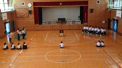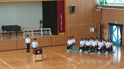 本日、6時間目に後期生徒会役員選挙が行われます。写真は、昼休みに行われたリハーサルの様子です!