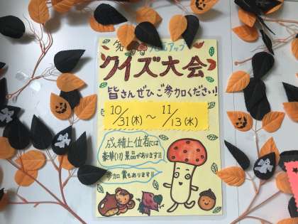 本校元気アップ図書ボランティアの皆さまにより、図書室が10月の装いになっています。