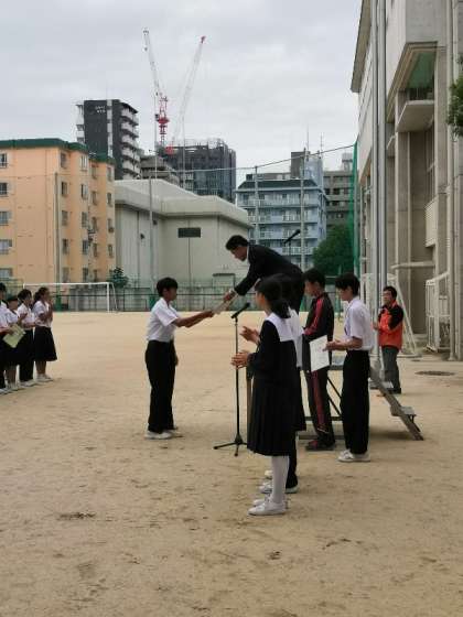男子テニス部、女子テニス部も表彰されました。男子女子ともに大阪府で3位です。素晴らしいですね!