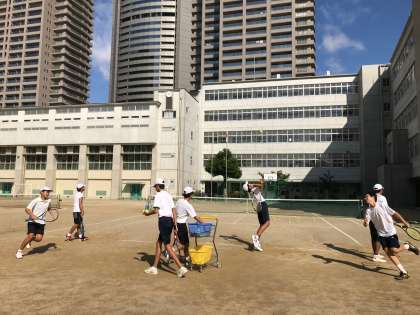 夜中に嵐のような風雨がありましたが、朝から晴れて、生徒は元気に活動しています。