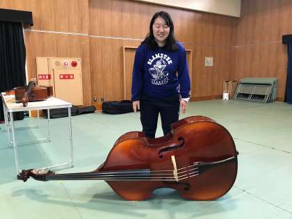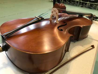 1番上の楽器は肩とあごで挟み、真ん中のは座って、下のは立って演奏します。