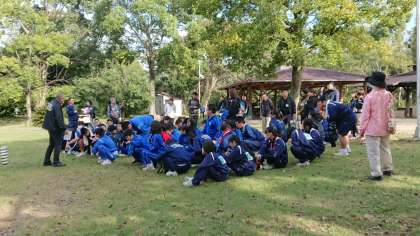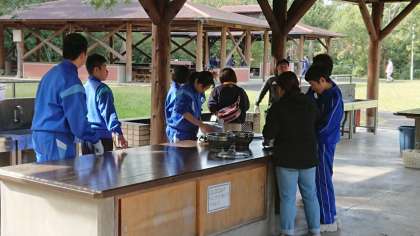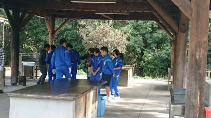 素晴らしいお天気の中、野外炊飯がはじまりました!(とってもあたたかいです)
