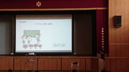 今朝は、1年生の学年集会がありました。今回は、滝川小学校から栄養教諭の先生を講師にお招きして『中学生の食事と健康』と題してご講話していただきました。