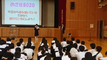 生徒の皆さん「8020を目標にしっかりと歯をみがきましょう!」